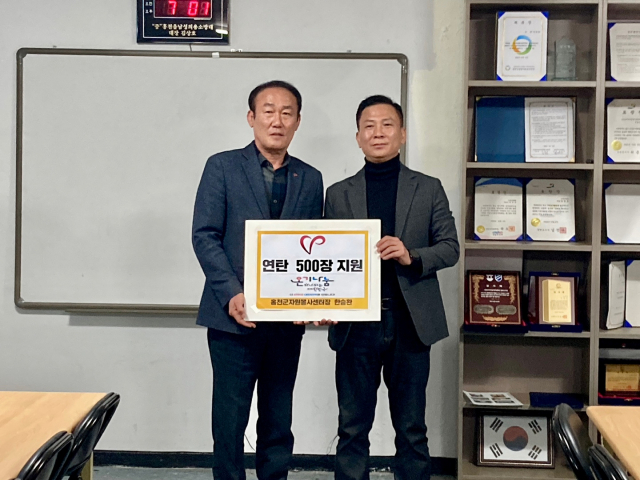 홍천군자원봉사센터(센터장:한승환)는 19일 홍천지역 봉사단체 그냥그럭회(회장:김경호)를 방문해 연탄 500장을 기탁했다.