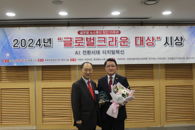 심오섭 강원특별자치도의원이 지난 29일 국회 제1세미나실에서 열린 ‘2024 대한민국 글로벌 크라운 대상 시상식’에서 지방자치부문 대상을 수상했다.