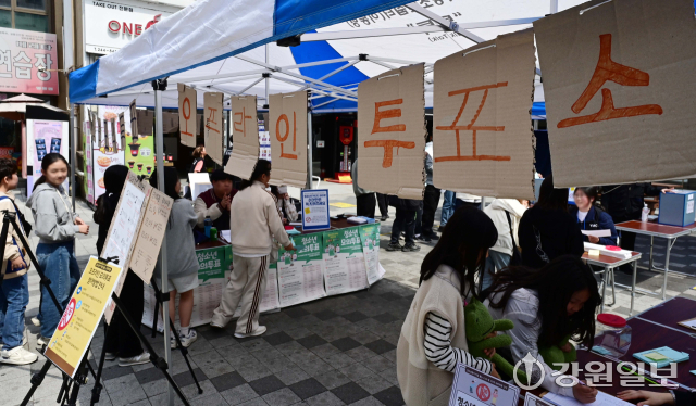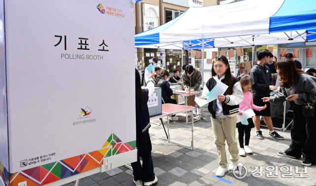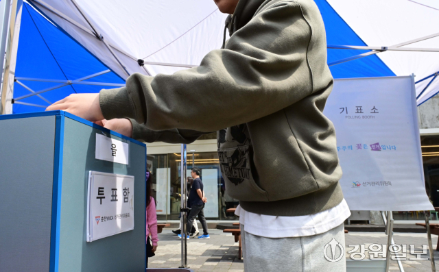 제22대 국회의원 선거일인 10일 춘천 명동에서 청소년들을 대상으로 한 모의투표가 진행돼 눈길을 끌었다. 청소년모의투표운동 강원본부 사무국인 춘천YMCA 주관으로 열린 이날 ‘청소년 모의투표’에는 만 9세부터 만 17세까지의 도내 청소년들이 참여해 청소년의 참정권 실현을 위해 한 표를 행사했다.