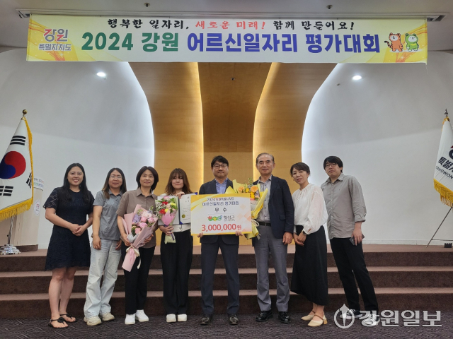 강원특별자치도가 주관한 ‘2024년 100세 시대 어르신 일자리 사업 평가대회’는 도내 18개 시군과 63개 수행기관을 대상으로 100세 시대 어르신 일자리 사업에 대해 5개 분야, 31개 지표의 정량 평가로 진행됐다.