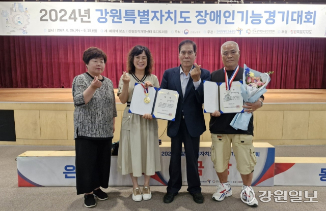 최근 강원창작개발센터에서 열린 강원특별자치도 장애인기능경기대회 컴퓨터활용능력 종목에서 정황금(화천)씨가 금상을, 목공예 종목에서 이영환(화천)씨가 은상을 각각 수상했다.
