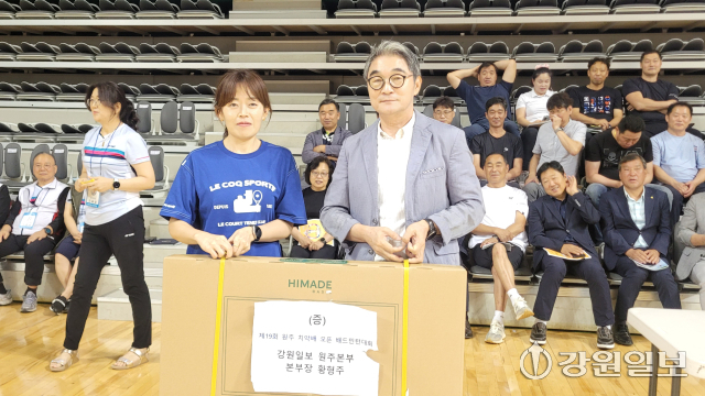 ◇올해 치악배 오픈 배드민턴 대회에서는 강원일보와 빌라드아모르 등 각 기관·단체, 업체에서 TV를 협찬하는 등 푸짐한 경품행사에 이목 집중. 대회 협찬사인 요넥스 코리아에서 내놓은 최고급 라켓과 골드바, 선풍기 등 푸짐한 경품에 참가자들 함박웃음. 강원일보에서 협찬한 TV의 주인공인 대전 콕72크루 소속의 윤소진씨는 "원주 대회에 처음 참석했는데, 생각지도 못한 선물을 받아 기쁘다. 앞으로 원주와의 인연을 꾸준히 이어갈 것"이라고 다짐.