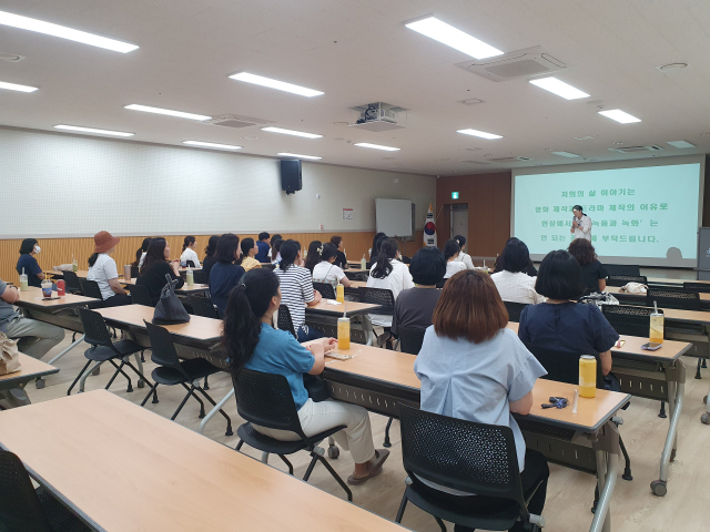 【원주】원주다가치 슈퍼우먼연합회가 10일 육아종합지원센터 지하대강당에서 부모를 위한 힐링교육을 펼쳤다.
