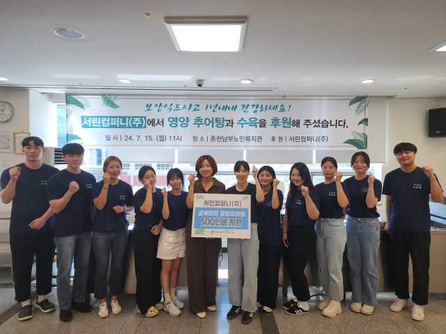 춘천남부노인복지관(관장:김소영)은 15일 초복을 맞아 서린컴퍼니(주)(대표 정서린,이영학)와 함께 복지관 이용 어르신 500명을 대상으로 ‘초복은 역시, 추어(탕)데이!’ 특식 행사를 진행했다. 이날 제공된 추어탕과 수육은 서린컴퍼니(주)로부터 500만원 후원을 받아 마련됐다.