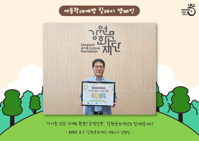 신현상 강원문화재단 대표이사는 5일 박상헌 (재)영월문화관광재단 대표이사의 지목을 받아 아동학대 예방 릴레이 캠페인에 참여했다.