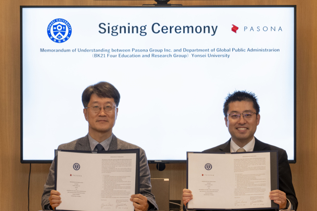 한편 파소나그룹은 파소나코리아 등 전 세계 14개국에 진출한 일본의 글로벌 대표 HR 기업이다. 연세대 글로벌행정학과 4단계 BK21 교육연구단은 2020년 행정학분야 대형 교육연구단에 선정돼 지역사회의 지속가능한 발전을 위한 사회혁신 및 거버넌스 연구에 기여할 대학원 인력양성을 지원하고 있다.