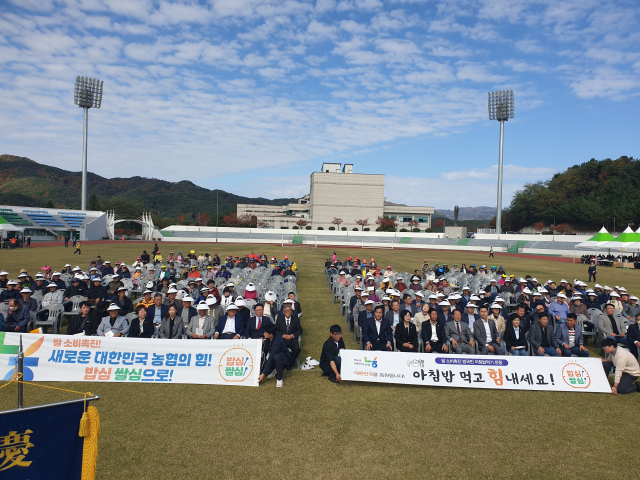 ◇2024년 평창군 농업인의 날 행사가 29일 평창읍 평창종합운동장에서 심재국 평창군수, 남진삼 평창군의장, 김태윤NH농협 평창군지부장, 평창군 농업인, 농업인 단체, 농․축협, 관련기관 직원등 1500여명이 참석한 가운데 열려 NH농협 평창군지부 주최로 쌀소비촉진 아침밥먹기 캠페인을 펼쳤다.