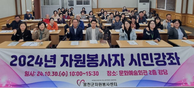 홍천군자원봉사센터(센터장:한승환)는 30일 문화예술회관 2층 강당에서 60여명의 교육생이 참석한 가운데 자원봉사자 시민 강좌를 개최했다. 이날 1부는 신정미 강사(강원특별자치도 탄소중립지원센터)가 탄소중립과 실천 방법을 강의했고, 2부는 구혜영 한양사이버대학교 사회복지학과 교수가 자원봉사와 시민성을 교육했다.