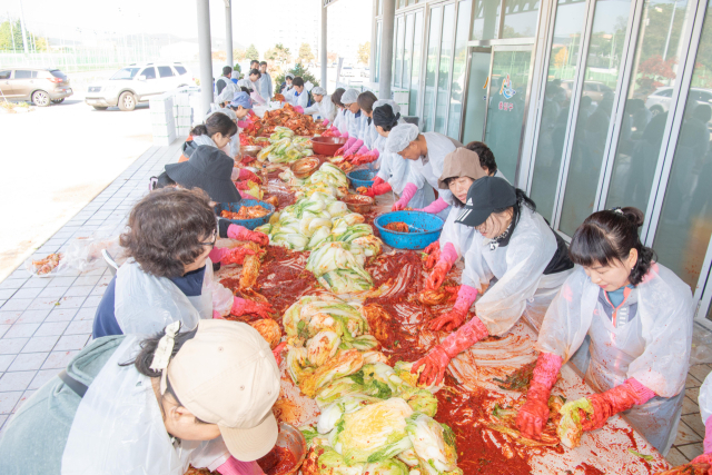 한국여성농업인 고성군연합회(회장:윤미아)는 3일 강원 고성종합체육관 식당동에서 함명준 군수, 용광열 군의장, 회원 등이 참여한 가운데 ‘2024년 김치담그기·농산물 직거래 장터’를 운영했다. 고성=권원근기자