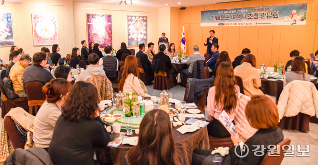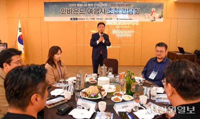 화천군과 (재)나라는 지난 7일 서울 강남구에서 내년 1월11일부터 2월2일까지 열리는 산천어축제 해외 인바운드 여행사 초청 간담회를 개최했다. 이날 간담회에는 타이완을 비롯해 베트남 등 동남아시아 인바운드 여행사 대표, 임원 40여 명이 참석했다.