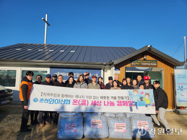 춘천와이신협(이사장:남준섭) 임직원 및 가족들은 지난 23일 장학리에서 춘천 연탄은행과함께 연탄배달봉사에 나서고 겨울이불 20채를 기부하는 등 온세상나눔캠페인을 실시했다.