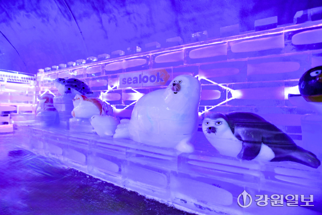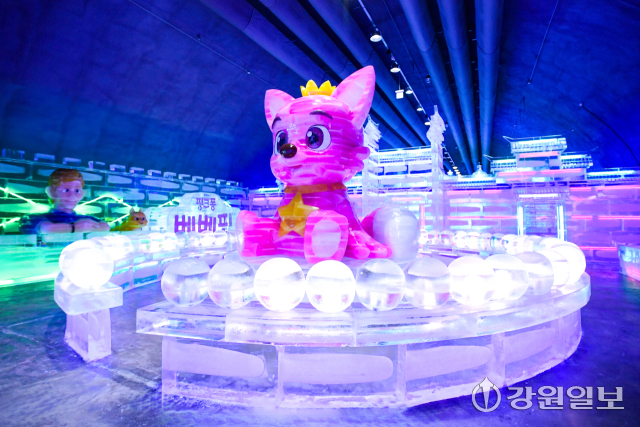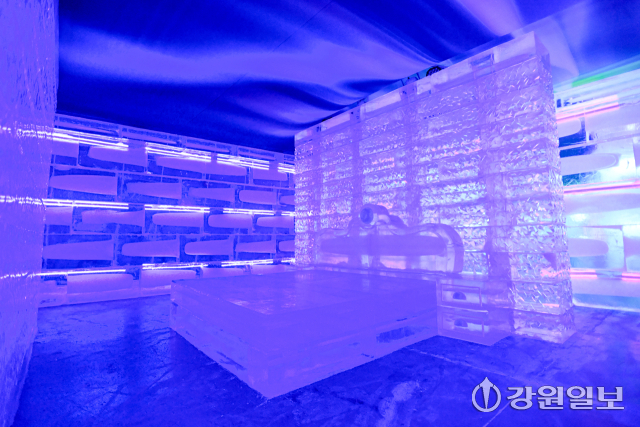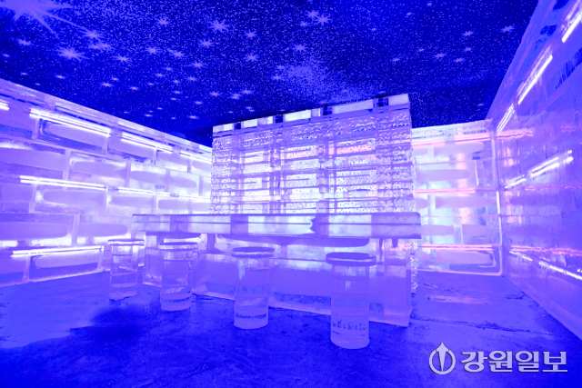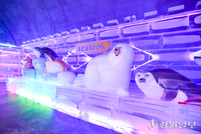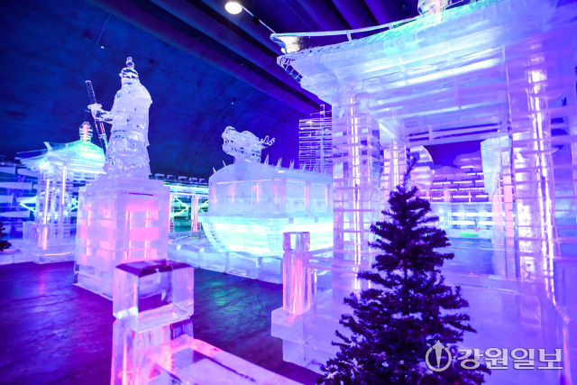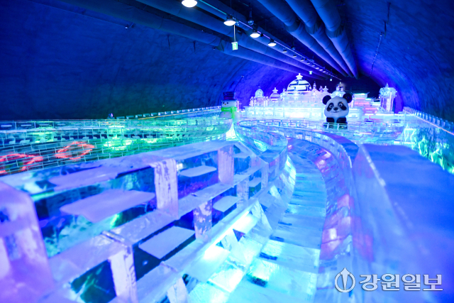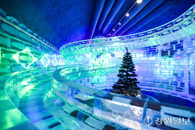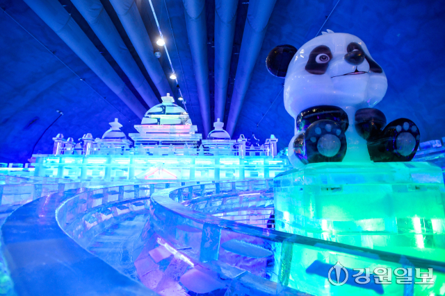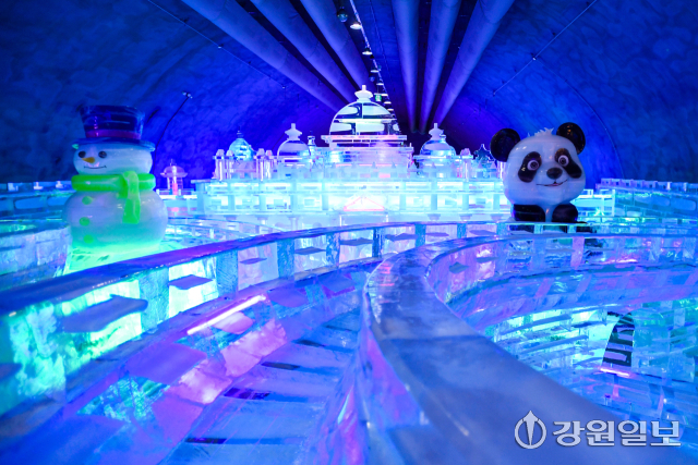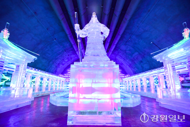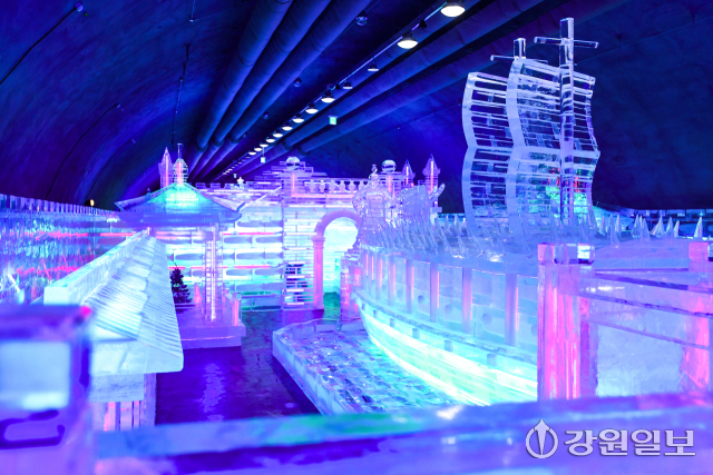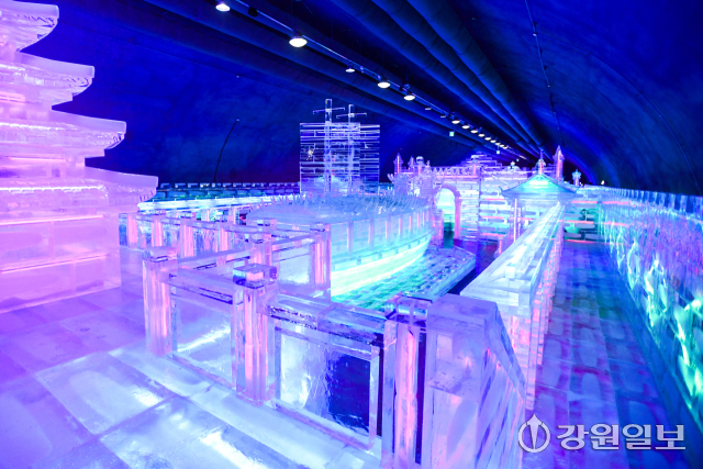 2025 화천산천어축제 주요 콘텐츠 중 하나인 세계최대 실내얼음조각광장이 21일 개장한다. 내부에 전시된 작품은 세계 최고의 빙등 기술을 자랑하는 중국 하얼빈 빙설문화발전 유한공사 전문가 그룹이 참여해 빚어냈다.