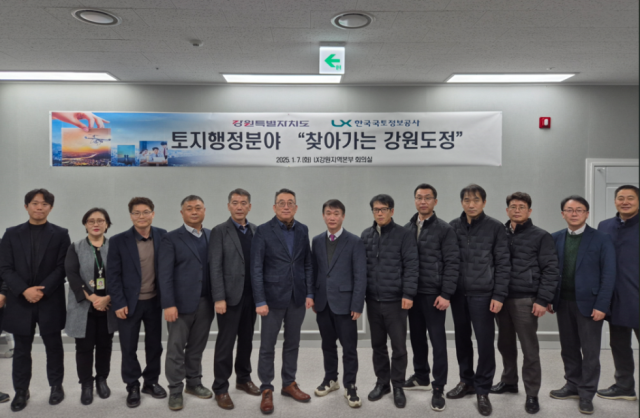 강원특별자치도와 한국국토정보공사(LX)는 7일 LX 강원지역본부에서 토지행정 분야 찾아가는 강원도정 간담회를 열었다.