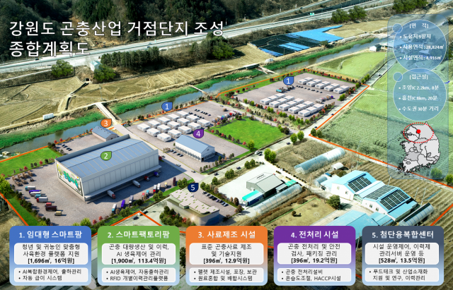 춘천시에 따르면 사업비 200억원을 투입하는 곤충 산업 거점 단지가 올해 동산면 조양리 일원에 조성된다. 단지는 2.8㏊ 부지에 스마트팩토리팜, 임대형 스마트팜, 사료 제조시설 등이 들어선다. 도는 27개 기관·기업과 산학관연 협력 체계를 구축했다.