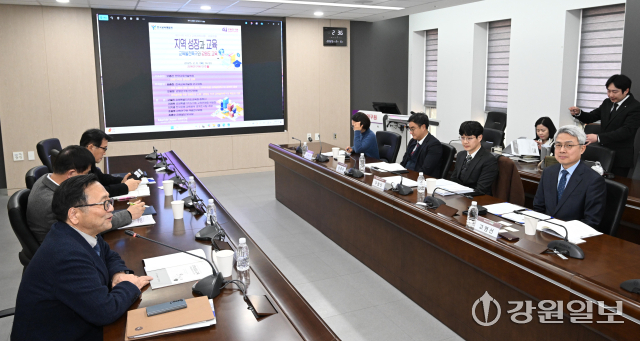 제214차 KEDI 교육정책포럼·강원포럼이 6일 강원연구원에서 '지역 성장과 교육, 교육발전특구와 강원도 교육'을 주제로 현진권 원장, 고영선 한국교육개발원장, 최병수 강원일보 부사장과 토론자·발표자가 참석한 가운데 열렸다.