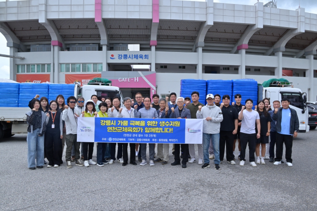 연천군체육회(회장:최용만)는 18일 강릉시체육회(회장:권영만)를 찾아 생수 2ℓ 3,000병을 전달했다.