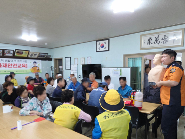 【양구】양구소방서는18일 해안면 현2리 마을회관 등을 방문해 현2리 주민과 외국인 근로자를 대상으로 응급처치 및 소방안전 교육을 실시했다.