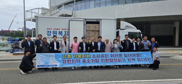 강원지역 중소기업 지원협의회 기관은 지난 19일 강릉아이스아레나에서 가뭄 어려움을 겪고 있는 강릉 소상공인들에게 종이컵 220 상자 등 필요물품을 전달했다. 이날 강원중소벤처기업청, 중소벤처기업진흥공단 강원본부, 소상공인시장진흥공단 강원지역본부, 기술보증기금 춘천지점, 강원테크노파크, 강원신용보증재단, 강원창조경제혁신센터, 중소기업중앙회 강원본부 등이 참여했다.