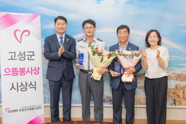 고성군자원봉사센터(이사장:함명준 군수)는 22일 군청 군수 집무실에서 으뜸봉사단체로 선정된 거진읍자율방범대(대장:박세진)와 으뜸봉사자로 선정된 최완순 고성군 지역자율방재단장에게 으뜸봉사상을 시상했다.