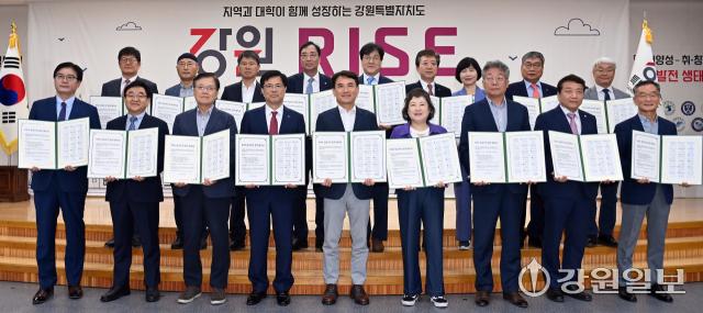 ■성과 평가 지표의 구체화= 정량적 지표(취업률, 창업기업 매출, 기술이전 수익, 특허 건수 등)와 정성적 지표(주민 만족도, 협력체계 안정성, 지역사회 기여도)의 두 축을 결합해 단순한 성과 측정이 아니라, 종합적 지역혁신 평가로 진화한다. 이러한 지표체계는 △산업육성 △인재양성 △지역정주 △도민행복의 강원RISE의 4대 성과목표로 연결된다.