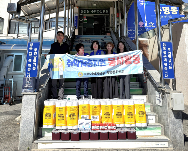 속초시 동명동 바르게살기위원회(부위원장 :장현숙)는 23일 추석 명절을 앞두고 지역 내 취약계층을 방문해 식료품과 의약품, 화장지 등 생필품을 전달하는 나눔 봉사활동을 펼쳤다.