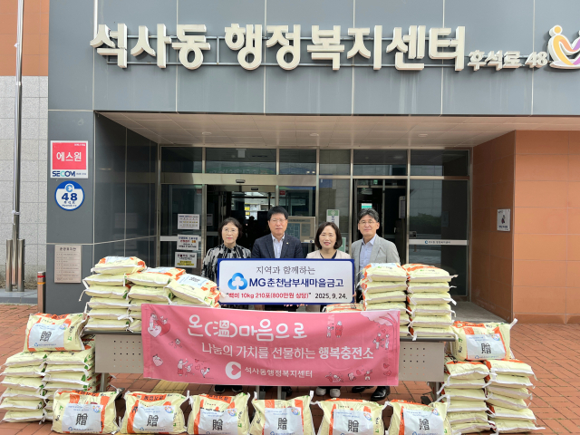 춘천남부새마을금고(이사장:정용현)는 24일 추석을 앞두고 퇴계동 및 석사동 주민센터을 방문, 불우이웃돕기 일환으로 백미10㎏를 가각 70포대씩(140포대)를 전달했다. 이날 지역 경로당 등 총 8백만원상당의 백미 210포대를 전달했다.