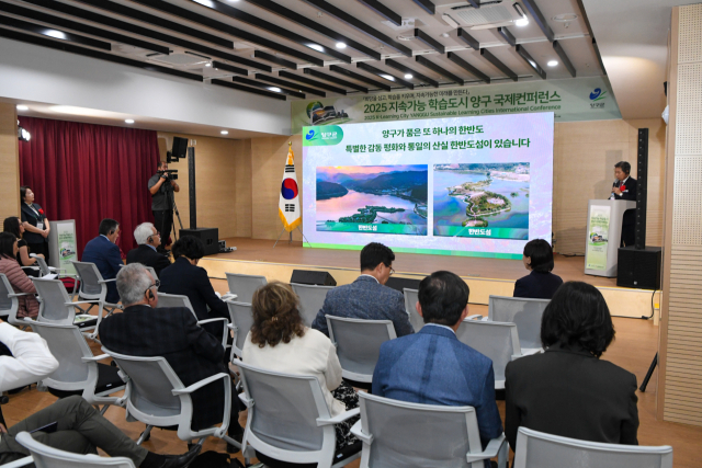2025 지속가능 학습도시 양구 국제컨퍼런스가 24일 양구 평생학습관 대강당에서 서흥원 양구군수, 정창수 양구군의장 및 군의원, 김애자 양구교육지원청 교육장, 최운실 미래글로벌공동재단 이사장, 글로벌 학습도시 네트워크(GNLC) 라틴아메리카 시장단 등 관계자들이 참석한 가운데 열렸다. '희망을 심고, 학습을 키우며, 지속가능한 미래를 만든다'를 주제로 한 이번 컨퍼런스에서는 K-학습도시 양구 특화 사례와 라틴아메리카 및 멕시코 학습도시연맹 도시들의 전략과 사례가 공유됐다.