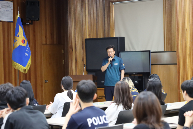미래 경찰관을 꿈꾸는 대학생들은 유기석 서장 및 선배 경찰관들의 특강을 들으며 경찰관이 갖춰야 할 소양과 최근 범죄 유형에 대해 알아보는 시간을 가졌다.