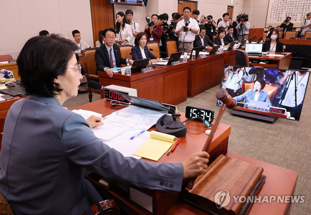 ◇지난 24일 서울 여의도 국회에서 열린 법제사법위원회 전체회의에서 더불어민주당 소속 추미애 위원장이 정회를 선언하고 있다. 2025.9.24. 연합뉴스.