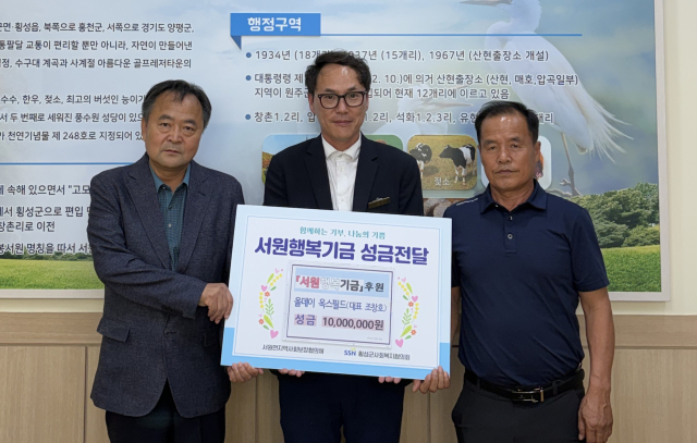 ◇횡성 올데이 옥스필드CC(대표:조창호)는 지난 26일 횡성군 서원면을 방문해 서원행복기금에 성금 1,000만원을 기부했다.
