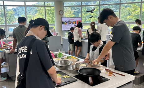 ◇국립횡성숲체원이 강원특별자치도 소방본부와 함께 진행한 '소방가족 산림치유 캠프' 참가자들이 횡성 치유도시락 체험을 하고 있다.