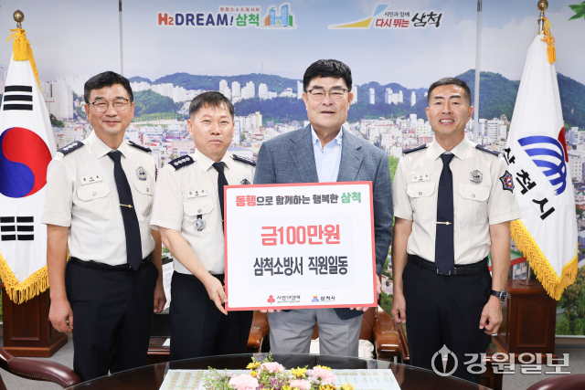 삼척소방서 김재석 서장과 직원들은 지난 26일 이웃돕기 성금 100만원을 삼척시에 기탁했다.