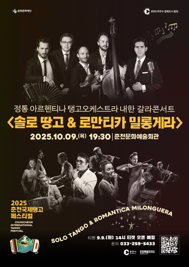 클래식한 정통 탱고의 깊이를 전하는 솔로 땅고(Solo Tango)와 로맨틱하고 감미로운 선율이 특징인 로만티카 밀롱게라(Romántica Milonguera)가 함께 어울려 펼쳐내는 공연이 춘천의 가을밤을 물들인다. 또한 이날 무대에는 세계 정상급 댄서 4팀이 합류해 탱고의 네 가지 감정 ‘사랑, 몰입, 배신, 환희’를 스토리텔링으로 풀어낸다.