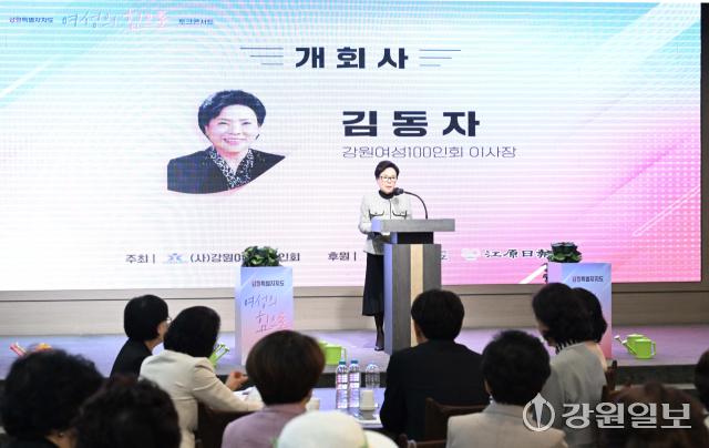 이날 토크콘서트를 주최한 김동자 강원여성100인회 이사장은 “강원 여성들의 열정과 헌신으로 오늘 이 자리를 마련할 수 있었다”며 “강원특별자치도의 새로운 도약을 앞둔 시점에 강원 여성들의 지혜와 경험을 공유하는 장을 만들어 지역 발전에 기여하고자 한다”고 말했다.