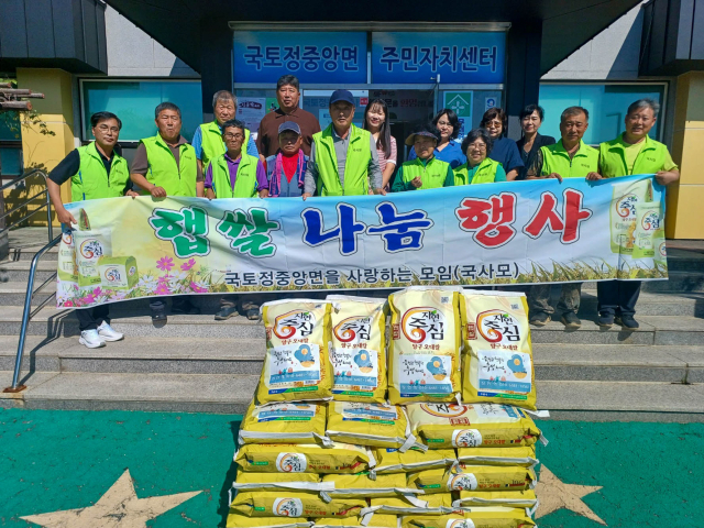 국토정중앙면을 사랑하는 모임(회장:장인희)은 지난 26일 쌀 10㎏ 50포대를 불우이웃에게 전달하고. 추석맞이 환경정비를 추진했다.