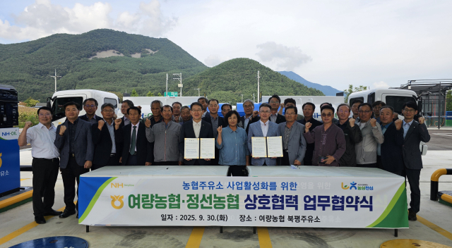 여량농협은 30일 여량농협 북평주유소에서 주재경 여량농협 조합장과 전영득 정선농협 조합장, 김보성 농협 정선군지부장, 농협 임직원 등 30여명이 참석한 가운데 농협 주유소 사업 활성화 및 농협간 상생발전을 위한 상호협력 업무 협약을 체결했다.