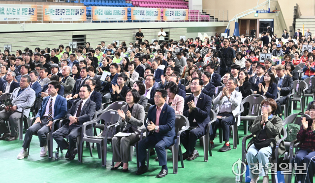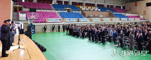 강원자치도 사회복지대회가 30일 춘천 호반체육관에서 홍기종 강원자치도 사회복지협의회장을 비롯한 사회복지인들과 김진태 지사, 김시성 도의장, 육동한 춘천시장, 배숙경 춘천시의회 부의장을 비롯한 내빈들이 참석한 가운데 열렸다.