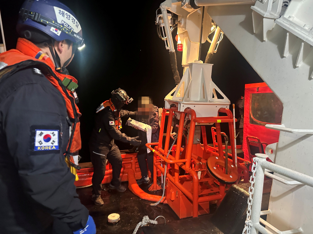 오전 4시 56분께 현장에 도착한 경비함정은 15분여간의 구조작업 끝에 어선에서 함정으로 응급환자를 안전하게 편승시켰다.