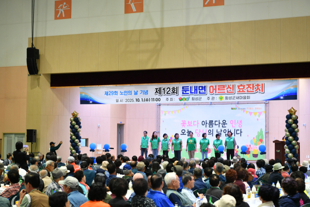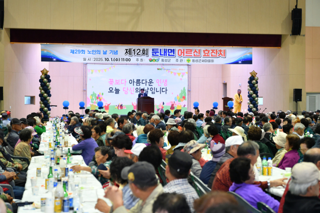 ◇횡성 둔내면 어르신 효잔치가 1일 둔내복합체육센터에서 김명기 횡성군수와 표한상 횡성군의장 등 기관단체장과 지역 어르신 700여명이 참석한 가운데 열렸다.