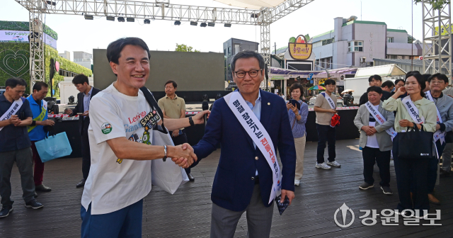 김진태 강원특별자치도지사는 추석 연휴를 앞둔 1일 강릉 중앙시장에서 장보기 행사를 가졌다. 김홍규 강릉시장, 각 기관·단체장 등 280여명과 합동 장보기에 나선 김 지사는 장보기에 앞서 참가자들에게 장보기 요령을 알려주겠다고 나서 눈길을 끌었다.