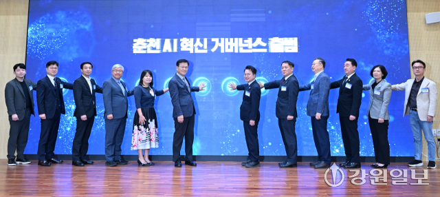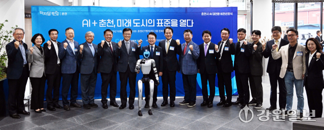 미지답포럼 및 춘천시 AI 대전환 비전선포식이 1일 춘천ICT벤처센터에서 이성철 한국일보 사장, 육동한 춘천시장, 김진호 춘천시의장, 최양희 한림대총장을 비롯한 내빈과 발표자·토론자가 참석한 가운데 열렸다. 신