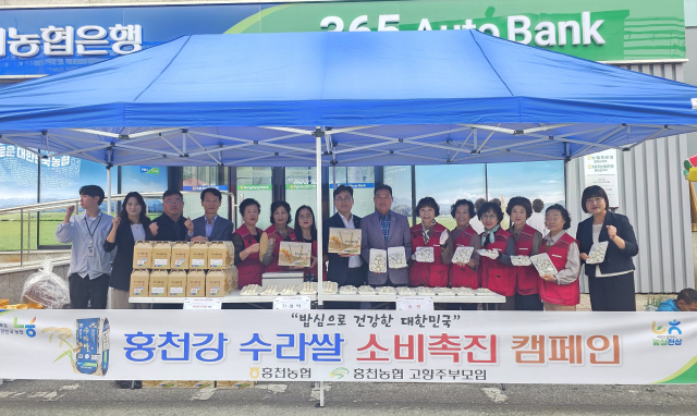 홍천농협(조합장:심영주), 홍천농협 고향주부모임(회장:이옥진), 농협중앙회 홍천군지부(지부장:김준태)는 1일 농협중앙회 홍천군지부 앞에서 추석을 앞두고 홍천강 수라쌀 소비촉진 캠페인을 개최했다.