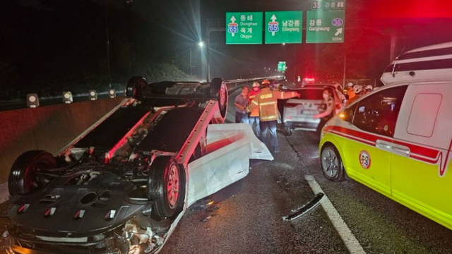 지난 5일 오후 7시57분께 강원도 강릉시 성산면 위촌리 동해고속도로 강릉 요금소 인근에서 승용차 2대가 충돌했다.