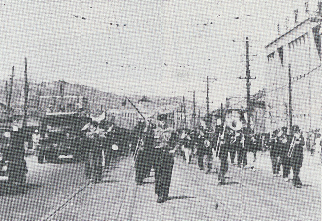 ◇1950년 보스턴마라톤에서 함기용과 함께 송길윤, 최윤칠이 나란히 1~3위를 석권한 뒤, 서울 시내에서 열린 축하 퍼레이드 장면. 시민들은 ‘대한민국의 기적’이라 불린 세 영웅의 귀환을 환호하며 거리 곳곳을 가득 메웠다. 사진=양정고 제공
