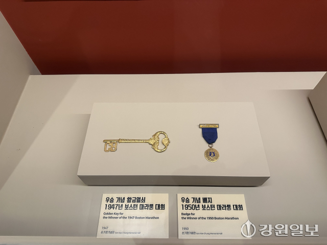 서울 국립중앙박물관은 광복 80주년 특별전 ‘두 발로 세계를 제패하다’ 특별전시를 열고 있다. 전시관 한켠에는 1950년 보스턴마라톤 우승 기념 배지에는 ‘Badge for the Winner of the 1950 Boston Marathon’이라는 문구가 영광스런 빛을 뽐내고 있었다.