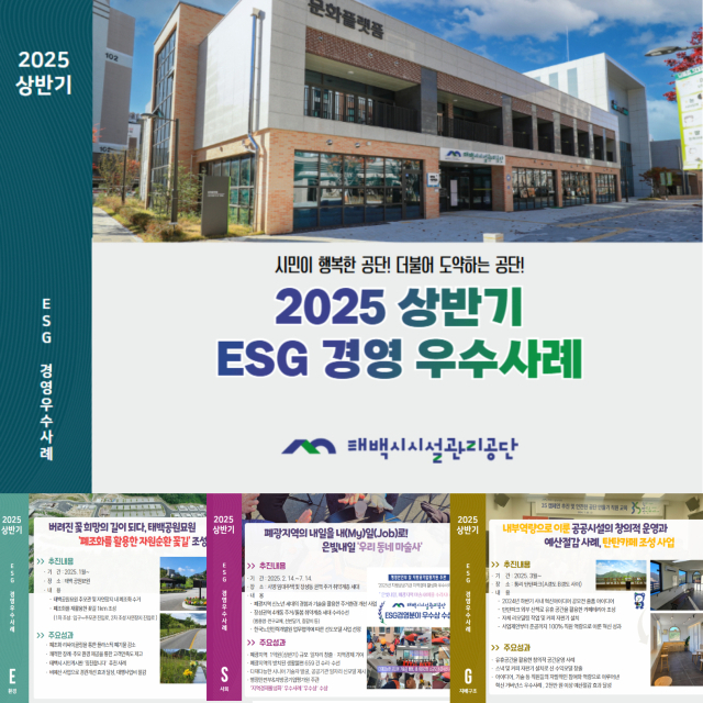 【태백】태백시시설관리공단이 2025년 상반기 주요 혁신 성과와 지역 사회 공헌 활동을 정리한 'ESG 경영 우수사례 모음집'을 발간했다.
