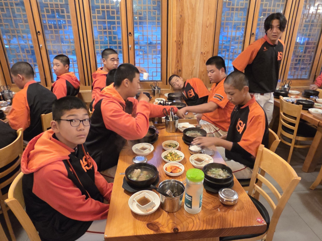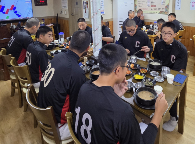 ◇제2회 태백시장기 전국우수중고등학교 전지훈련 및 야구대회가 지난 9일부터 오는 19일까지 태백스포츠파크 야구장 일원에서 열려 지역 상경기가 반짝 특수를 누리고 있다. 사진은 지역 식당을 이용하는 참가팀의 모습.