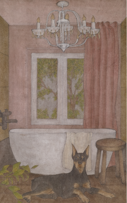 이번 전시에는 10~15점의 회화 작품이 선보인다. 한국화의 전통 재료인 한지, 먹, 분채 안료를 주로 활용해 시간성과 물질감이 녹아 있는 전통 재료의 특성이 작가의 주제의식과 맞물리며 작품 속에 깊은 울림을 더한다. 작품 속 창과 문은 내면과 외부 세계를 연결하는 상징으로, 도베르만의 이미지는 가부장적 권위와 억압을 은유적으로 드러낸다.