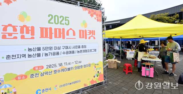 2025 제2회 춘천 파머스마켓이 11, 12일 이틀간 춘천 삼악산 호수케이블카 의암호 정차장 마당에서 열렸다. 춘천시와 (사)춘천시농어업회의소가 마련한 이번 행사는 생산자 중심의 직거래 시장으로 ‘세대공감, 자원순환 피크닉’ 프로그램과 함께 환경 캠페인, 자원순환 체험부스, 지역 농산물 먹거리 장터가 운영돼 풍성한 볼거리와 즐길 거리를 선사했다.