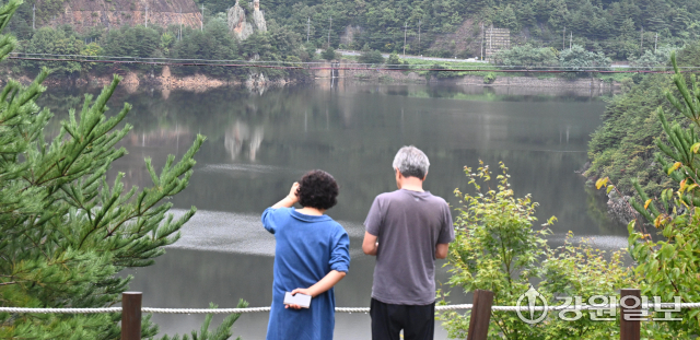 사상 최악의 가뭄으로 지난 9월 12일에는 역대 최저 저수율인 11.6%까지 떨어지며 바닥까지 드러냈던 강릉 오봉저수지가 지난 추석 연휴 기간에 내린 비로 한때 저수율이 90%를 넘어서며 지난 7일 오후 1시부터 오봉저수지에서 초당 23톤 규모로 약 1년 만에 방류를 시작했다. 비가 내린 12일 오봉저수지는 초당 약 11톤 규모로 방류하며 수위를 조절하고 있다. 이번 방류는 지난해 10월 18~24일 이후 약 1년 만이다. 강릉=권태명기자